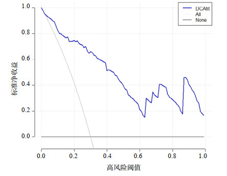 | 图 4 列线图模型的决策曲线分析 Fig 4 Decision curve analysis of nomogram model |