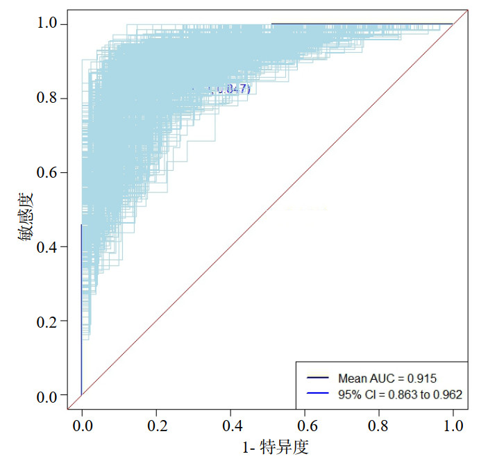| 图 5 基于Bootstrap内部验证绘制ROC曲线 Fig 5 ROC curve based on internal Bootstrap validation |