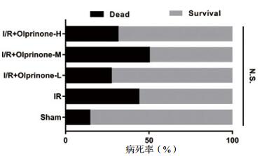 如图 2所示,实验各组之间24 h内的病死率对比,差异无统计学意义(P > 0.05)。