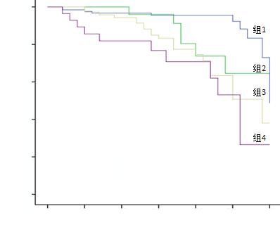 比较四个亚组患者的生存率,差异有统计学意义,组1 > 组2 > 组3 > 组4(P < 0.01),见图 2。