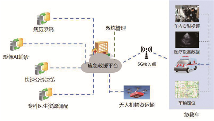 图 2 5G紧急医学救援系统架构图 Fig 2 The frame of 5G-based emergency medical system |