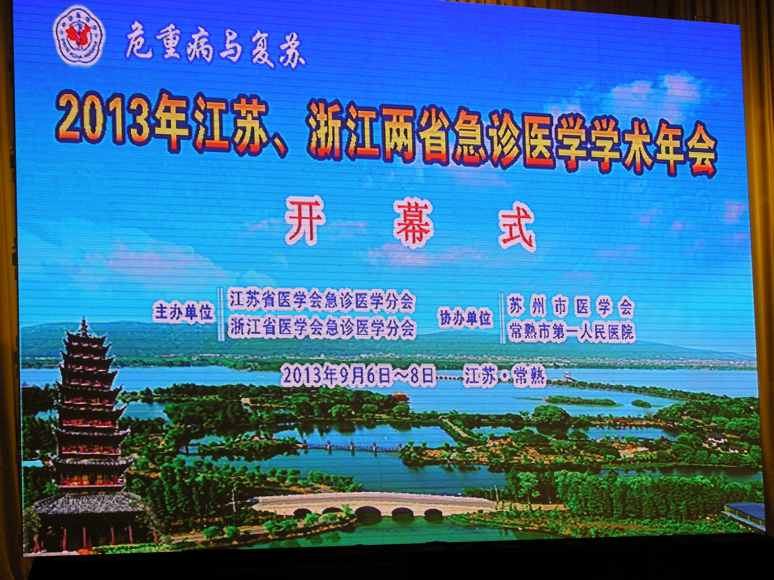 在江苏、浙江两省医学会的大力支持和两省急诊医学分会的精心组织下,第四届江苏、浙江两省急诊医学学术年会于2013年9月6-8日在江苏省常熟市顺利召开。