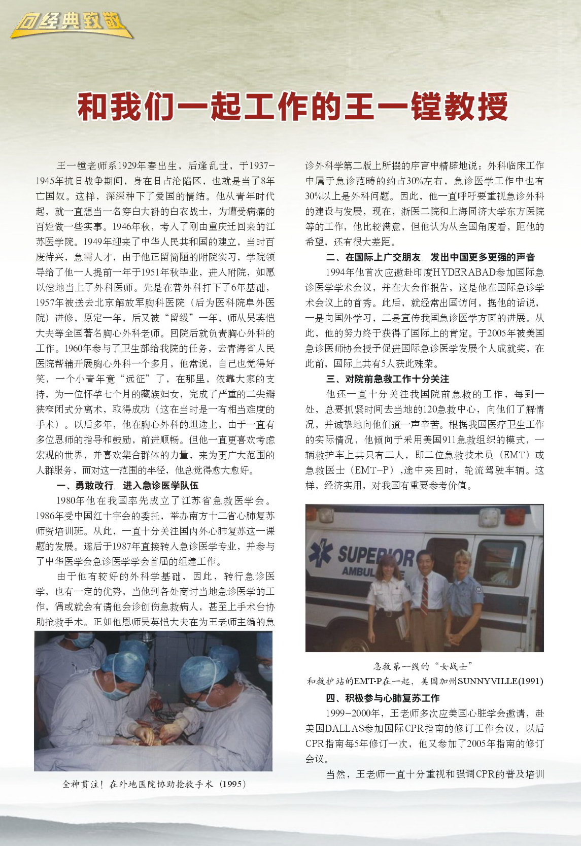 1999-2000年,王老师多次应美国心脏学会邀请,赴美国DALLAS参加国际CPR指南的修订工作会议,以后CPR指南每5年修订一次,他又参加了2005年指南的修订会议。