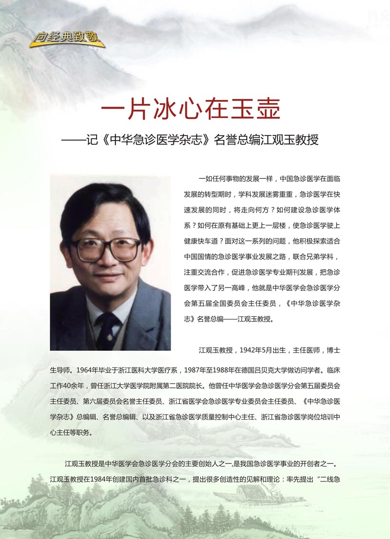一片冰心在玉壶——记《中华急诊医学杂志》名誉总编江观玉教授