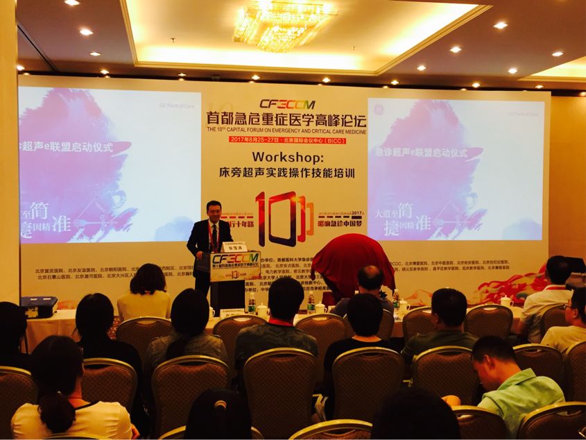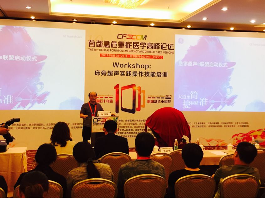 2017年8月26日,借第十届首都急重症医学高峰论坛举办之际,由中日友好医院急诊科和GE医疗中国倡导,42家医院和机构共同发起的急诊床旁超声e联盟正式启动! 在启动仪式上GE公司临床超声事业部大中华区张雪涛经理分享了GE公司临床超声的发展历程和一直致力于为危重症患者服务的超声技术设计理念,展望未来危重症超声应用的广阔前景。随后急诊床旁超声e联盟的倡导者之一中日友好医院急诊科张国强教授诠释了“e”联盟的深刻含义:借GE(e)公司优厚的超声技术优势;充分利用互联网(e)的便利,分享急诊超声的经验和成果;使急诊超声的应用和推广更加easy(e)。急诊床旁超声e联盟的宗旨是搭建急诊超声的应用平台,探索急诊超声的科研线索,推广急诊超声的规范培训。与大家一起,努力把急诊床旁超声带到每一个角落。