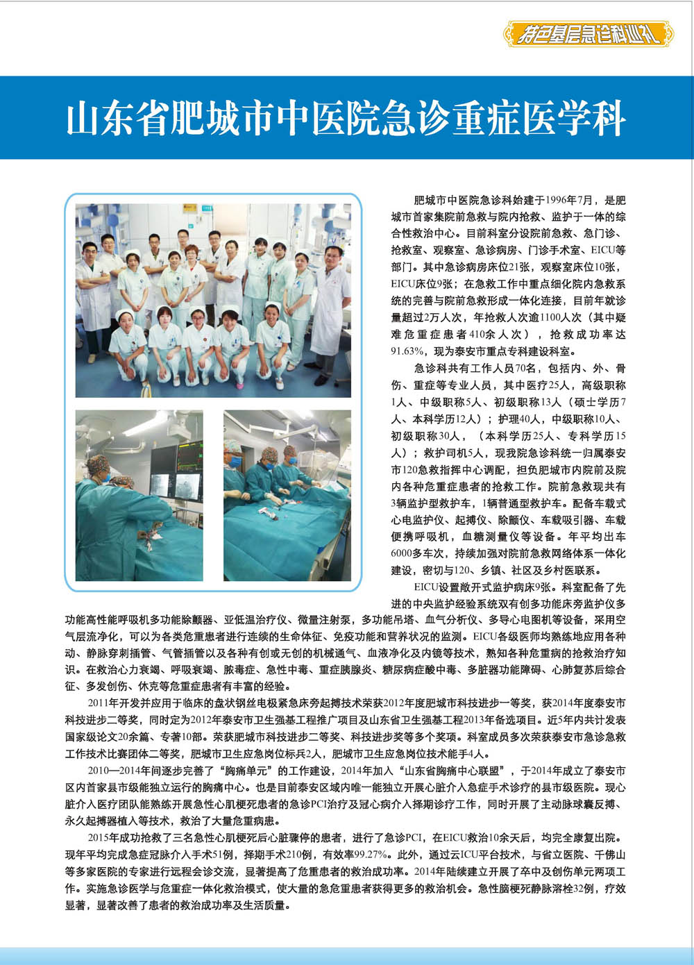 【特色基层医院急诊医学科】山东省肥城中医院急诊重症医学科