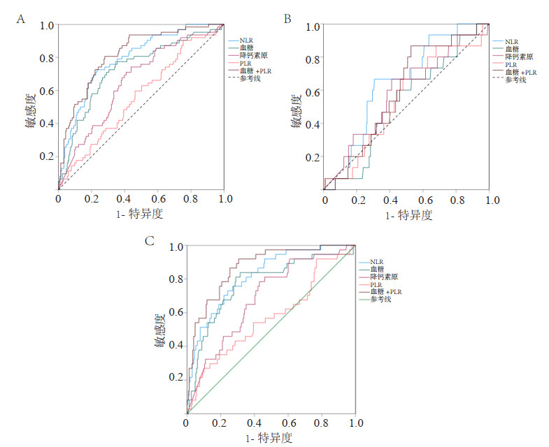 | 注:NLR为中性粒细胞与淋巴细胞比值,PCT为降钙素原,PLR为血小板与淋巴细胞比值 | |||||||