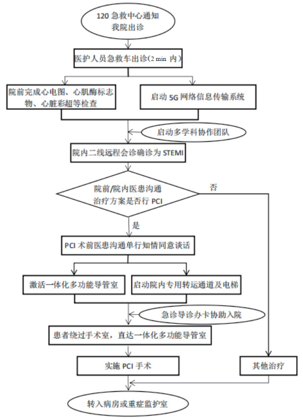 综合诊断患者病情是否符合PCI标准 | 不能请二级医师会诊 | 患者只能等到转运至抢救室方可完善检查明确诊断 | ①组建多学科团队,通过5G远程会诊平台实时会诊,院前确诊②制定STEMI院前诊断流程。 | 4.20 | 8.80 | 5.60 | 206.98 | 92.31 |