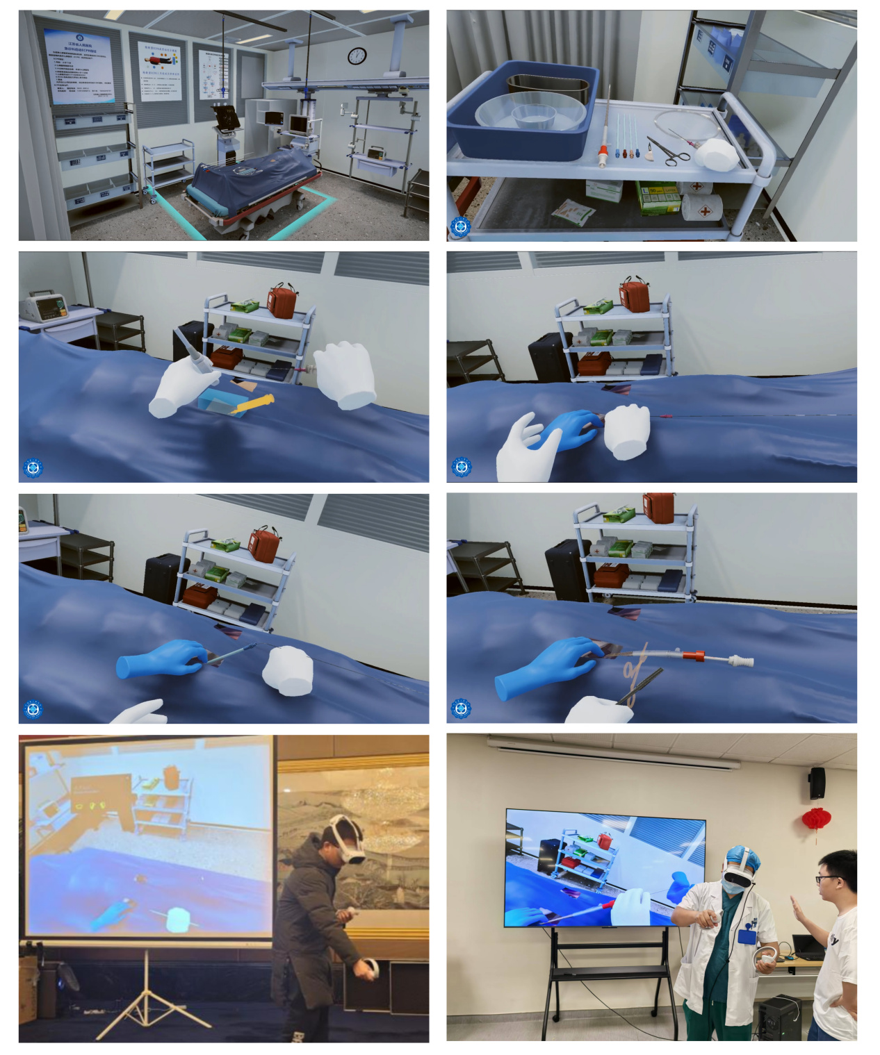 ECMO虚拟现实培训软件系统由南京医科大学第一附属医院急诊与危重症医学科与上海元聿智能科技有限公司共同开发。设备主要由服务器(联想TS80X,中国)、图形工作站(联想刃9000K,中国)、VR头显及配套手柄(PICO 4,中国)组成。
