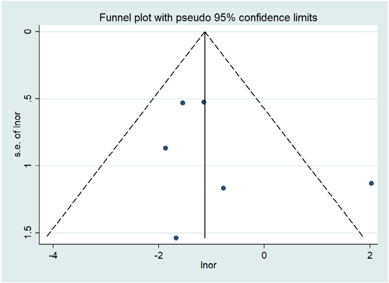 纳入的11项研究[11-21]进行逐个剔除单项研究后进行敏感度分析并合并效应量,所有效应量均包含于总的95%CI效应量,表明结果稳定性较好。数据结果如下图所示:(图 8-9)。
