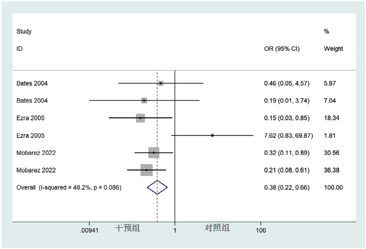 | Mobarez 2022[19] | 随机对照研究 | 伊朗 | 66/34 | 干预组:人工泪液对照组:生理盐水清洗 | 0.65 | 角膜炎;结膜炎;干眼;角膜溃疡 |
