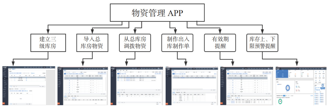 (3)保障物资管理APP 本研究利用云仓库物资管理APP, 对保障物资实施动态管理(其基本功能模块见图 1)。