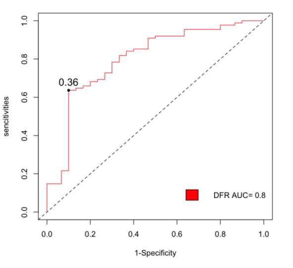| 图 1 DFR指数对sHTGAP发生的ROC曲线 Fig 1 ROC curve of the DFR index for the occurrence of sHTGAP |