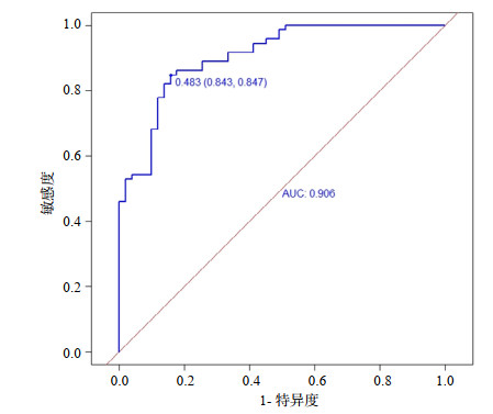 | 图 2 列线图模型的ROC曲线 Fig 2 The ROC curve of the nomogram model |