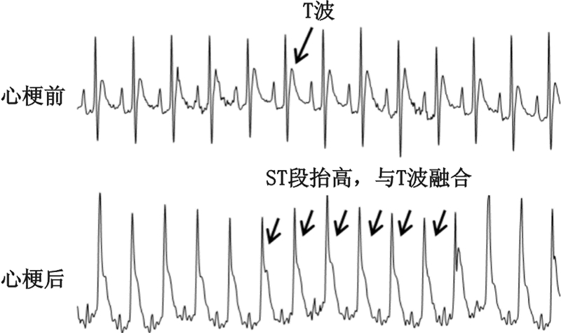 图 1 心梗前后Ⅱ导联ECG的变化 Fig.1 Changes in Ⅱ lead ECG before and after myocardial infarction |