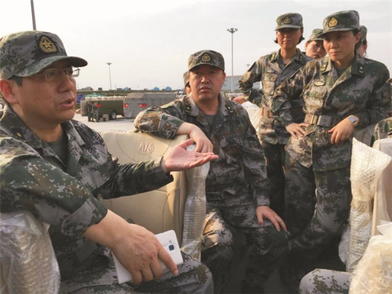 8月3日,组织随车医护人员进驻阅兵村;8月4日至17日,以阅兵专题教育、受阅训练、现场急救、生活护理和驻点健康维护技能培训为主要内容,进行封闭式强化训练,参加8月12日、17日的全要素合练,做好参加8月23日现场预演的各项准备。为了共同面对老同志随车医疗保障这个崭新课题,医疗队就阅兵教育、队列基础、乘车受阅动作、机动期间急救等进行了封闭式训练,协调顶级医疗护理专家进行专题授课,并组织了10课时的CPR、紧急气道建立、创伤急救等现场急救技术培训。