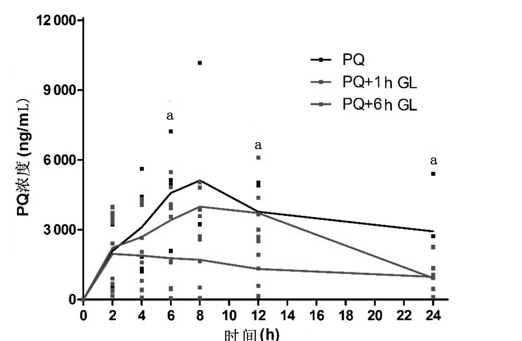 | 图 2 各组血液PQ浓度比较(aP<0.01) Figure 2 Comparison of PQ concentration between each group(aP<0.01) |