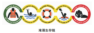 3 淹溺生存链 3.1 概念由于改进了急救系统,美国淹溺死亡率已从2000年的每1.45人/10万人降低到1.26人/10万人[13]。欧洲复苏协会提出了淹溺生存链的概念,它包括五个关键的环节:预防、识别、提供漂浮物、脱离水面、现场急救[14]。
