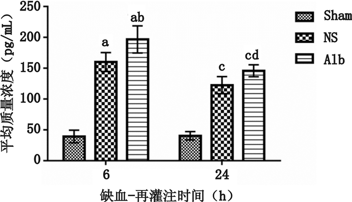 注:a为Sham组和NS组比较,b为Sham组和Alb组比较。 |
