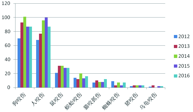 伤害是突然发生的对人体的损伤。研究报道,全球平均每分钟就有9.5人因意外伤害死亡[1]。其高致残率已成为威胁人们健康的重要问题,而咬伤作为其中一种也逐渐引起了社会的广泛关注。而伤害具有可防性[2],本文对2012—2016年共1 176例咬伤患者进行回顾分析,对其意外发生进行初步研究,以寻求有效预防和处理方法。