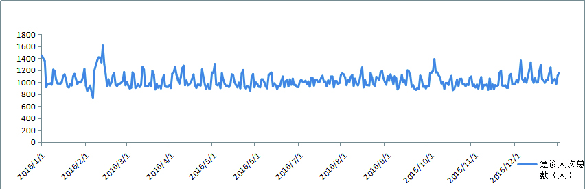 | 图 1 2016年上海某三甲医院急诊科就诊人次总数分布 Figure 1 The distribution of the emergency department in a Shanghai 3rd Grade Class A hospital in 2016 |