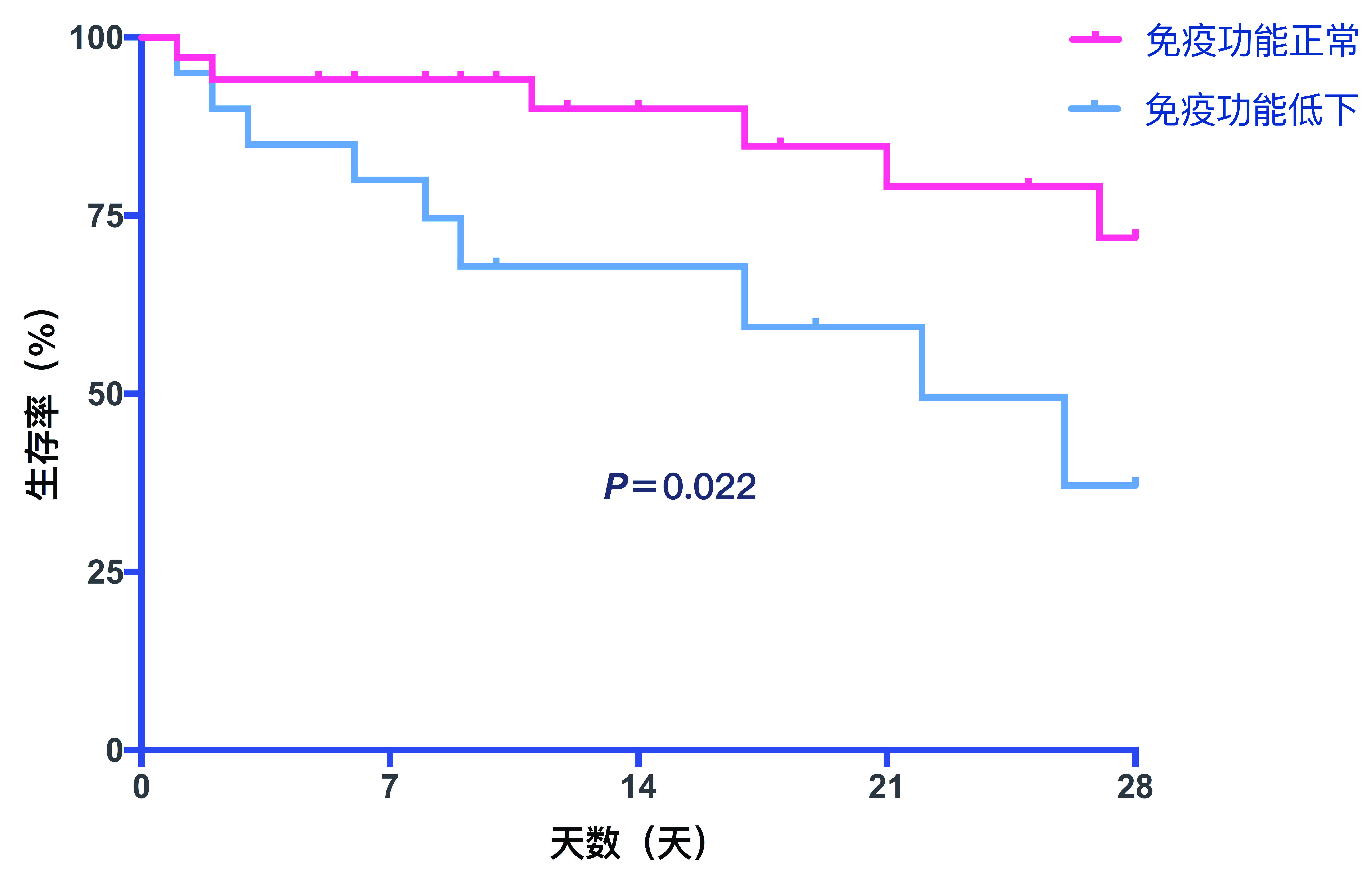 | 图 1 免疫功能低下与非免疫功能低下的PARDS患者生存分析 Figure 1 Survival analysis of PARDS patients with or without immunocompromise |