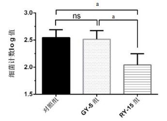 | GY-5和RY-15作用于BMDMs 6 h后,GY-5组和RY-15组菌落数比较(n=3)。ns表示差异无统计学意义,aP < 0.05 图 2 GY-5和RY-15对BMDMs清除细菌功能的影响 Figure 2 The bactericidal effect of GY-5 and RY-15 in BMDMs |