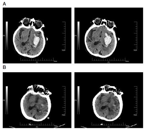 目前脑出血的微创手术治疗方式有显微镜及内镜直视下的血肿清除术和颅内血肿定向穿刺引流术[16],根据笔者的经验,颅内血肿较大、脑疝患者或即将脑疝患者我们建议开颅手术,中等血肿、病情稳定(15~30mL)的患者建议行颅内血肿微创穿刺清除术,个别高龄患者如果脑萎缩明显,尽管颅内血肿较多(>30mL)但颅内压不高的情况下也可行微创穿刺。与开颅手术相比,颅内血肿微创穿刺清除术采用局麻,适应证广,高龄患者合并多脏器功能减退或伴有严重基础疾病等已不再是手术绝对禁忌证。根据笔者的经验,此项技术术后管理有两个重要的方面,一是溶血药物的应用,笔者推荐应用尿激酶3~5万单位(溶解于5 mL生理盐水),2次/1 d,必要时3次/1 d;二是拔管时机的把握,建议根据每日引流量及术后CT判定拔针时间,拔管指征(一般2~3 d)有:术后复查CT提示颅内血肿清除大部(70%~80%)、引流液变少、颜色变浅变淡。在整个治疗过程中务必保持引流管的畅通,如出现堵管的现象,应及时发现并疏通管道。