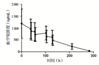 美国FDA于2003年10月批准普鲁士蓝用于治疗铊中毒, 但缺乏系统临床中毒救治的案例,我国目前也没有急性铊中毒的标准治疗方案。本中毒救治中心曾进行铊染毒动物的毒代动力学研究[12],也探讨了同等程度染毒动物实施三种不同治疗方案的效果[13],临床试探性治疗了数例急性铊中毒患者,并获得与实验一致的疗效[3, 14]。本组患者在前期研究的基础上,确诊后立即给予口服普鲁士蓝胶囊,体内铊含量高的患者同时给予了血液净化治疗。有报道血液净化可起到迅速排铊的作用[15-17]。有报道血液灌流联合普鲁士蓝可最有效地治疗铊中毒[13, 18]。本组有4例患者进行了血液灌流,1例患者进行血浆置换,从治疗结果看,均可以快速降低体内铊的含量。血液灌流患者中第3次灌流前血铊浓度较第2次灌流后的浓度高,考虑为铊从组织中再次释放入血所致。