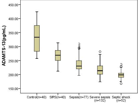 本研究证实了endocan、vWF、ADAMTS-13、vWF/ADAMTS-13的水平对于急诊抢救室脓毒症患者具有一定的危险分层价值,尤其是vWF/ADAMTS-13,高水平的vWF/ADAMTS-13是脓毒症病情危重的标志。