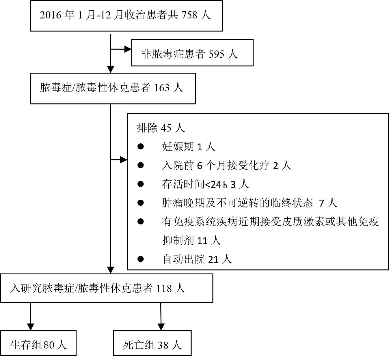 1.1.1 纳入标准① 符合2016年SCCM/ESICM脓毒症/脓毒性休克诊断标准;②年龄 > 18岁。
