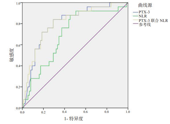 图 2 PTX-3、NLR、PTX-3联合NLR对脓毒症病死率预测的ROC曲线 |