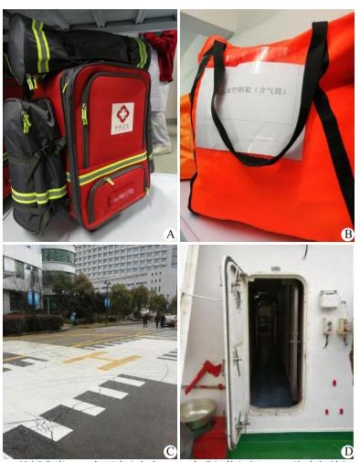 A:救援背囊;B:负压真空担架;C:直升机停机坪;D:海事船舱门 图 2 海上救援硬件设施 |