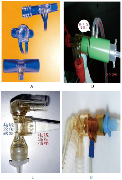 2 新生儿呼吸机与儿童/成人呼吸机的加温湿化器和管路不能通用胎儿出生后, 呼吸系统会发生一系列变化。首先是肺泡发育不成熟[4],表现为两个方面:第一是解剖结构上, 新生儿肺泡的发育比较晚, 新生儿肺泡仅1 700~2 000万个, 18个月后才达到1.3亿个, 也仅为成人的40%左右, 新生儿的肺血管完全扩张要数月之后才渐趋完善;其次新生儿的免疫系统和气道黏液纤毛转运系统发育不完善, 呼吸道很容易受到损伤, 影响气体交换效果。所以呼吸机支持对于新生儿和早产儿显得十分重要。同时,新生儿的代谢很快, 对于氧的需求很高, 需要足够数量的肺泡去维持良好的气体交换,如果提供的气体温度、湿度不足,将导致气管插管内的分泌物增加,因水分的丧失而干结成痰,如果黏稠的痰难以吸出,致管腔狭窄气道不畅[5]。阻力的定义为1 s内为该胸肺扩充1 L气体需要外加多少压力。新生儿的正常吸气阻力约为5~15 cmH2O/(L·S), [呼气阻力约为3~12 cmH2O/(L·S)]。顺应性定义为呼吸机送一个一厘米水柱的压力给该肺泡能发生多少毫升肺容积的变化,是反映肺部弹性的参数。儿童/成人的顺应性约为50~80 mL/ cmH2O;而新生儿顺应性的正常值仅3~5 mL/cmH2O;很明显新生儿的阻力远较儿童/成人大,而顺应性却远小于儿童/成人。黏液的淤积导致气流阻力增大,黏液纤毛转运系统又把从下呼吸道推移上来的分泌物都积聚在气管插管的出气口顶端,堵塞气流流通,使气流通过气管能力大为下降,分泌物又导致细菌繁殖而引发气管内膜的细菌性感染。所以如果气道内湿度不足,将造成分泌物的黏稠干结,在较小支气管分支形成痰栓,从而进一步造成肺泡或肺小叶不张,导致肺顺应性下降及分流样效应,甚至发展成支气管哮喘、支气管痉挛、肺炎、肺不张、肺气肿和肺后下部坠积性淤血等新生儿一系列的呼吸系统疾病。新生儿在出生后第1天气管黏膜在干燥、低温的环境中可能直接被刺激而形成充血和炎症反应,显著增加新生儿的发病率和病死率。中华医学会重症医学分会在《机械通气指南》中提出严格要求,新生儿呼吸机进入气道内的气体温度必须达到37 ℃,相对湿度必须达到100%、44 mg/L的要求,远比儿童/成人严格得多。