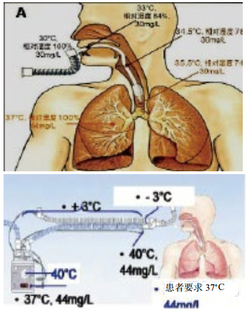| 图 4 呼吸机外部管路和气道内部位的温湿度变化示意图 |