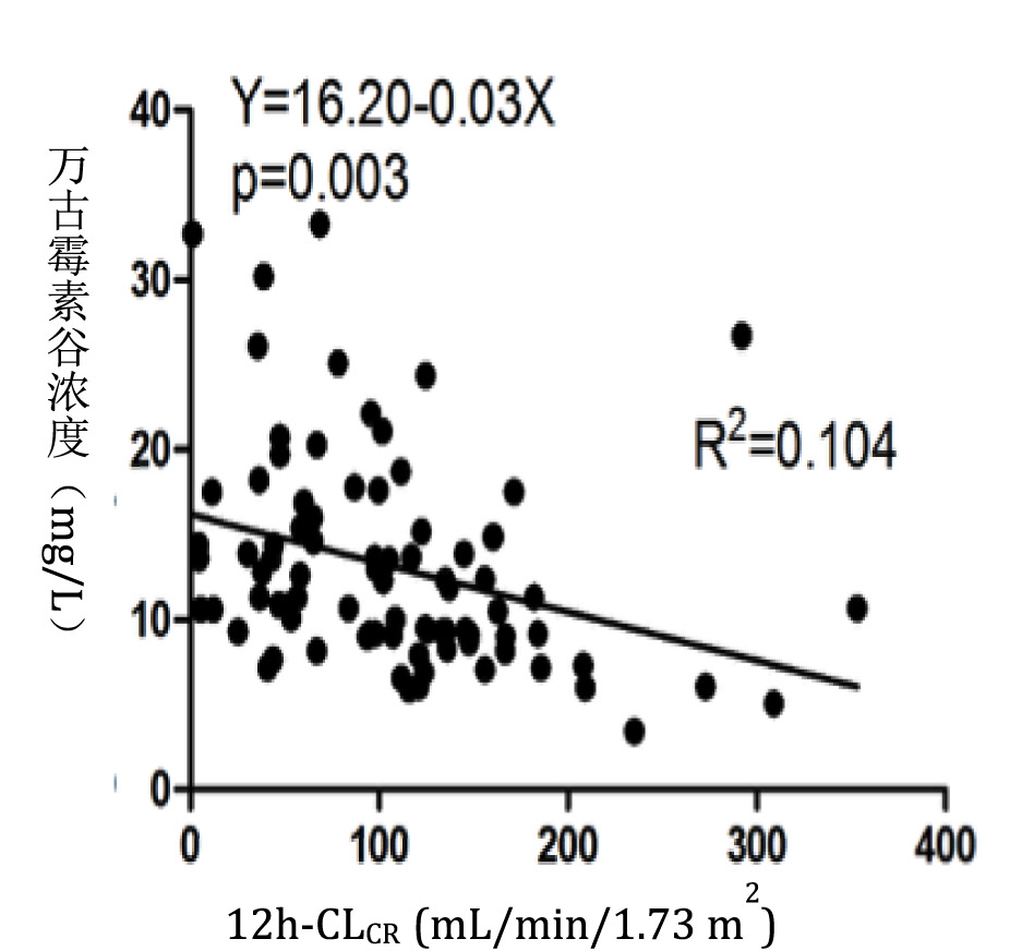 | 图 4 万古霉素血药浓度与肌酐清除率相关性分析 |