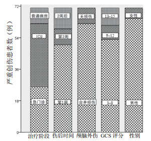 1 资料与方法 1.1 一般资料研究于浙江大学医学院附属第二医院进行,对象为收住急诊ICU的严重创伤患者。纳入标准:①年龄≥18岁; ②受伤至入院时间≤48 h; ③损伤严重度评分(injury severity score,ISS)≥16分。排除标准:①入院24 h内死亡或自动出院; ②晚期恶性肿瘤患者; ③家属无积极治疗的意愿。