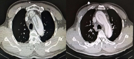 图 3 患者肺CTA示主动脉弓夹层(Stanford A型) |