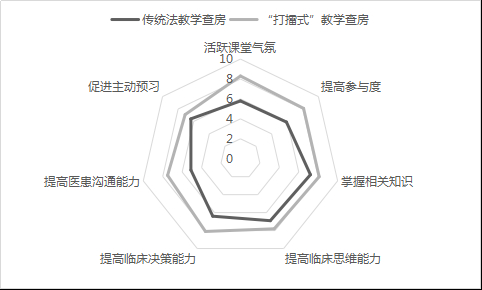 住院医师认为“打擂式”教学查房更能促进主动预习,第二次“打擂式”教学查房的预习比率也比第二次传统模式教学查房时提高。可能是为了能更好参与组内讨论,并赢得“打擂”,住院医师在“打擂式”教学查房前会更积极主动地去查阅和准备相关知识。这些有利于理论知识水平和知识拓展能力的提高。