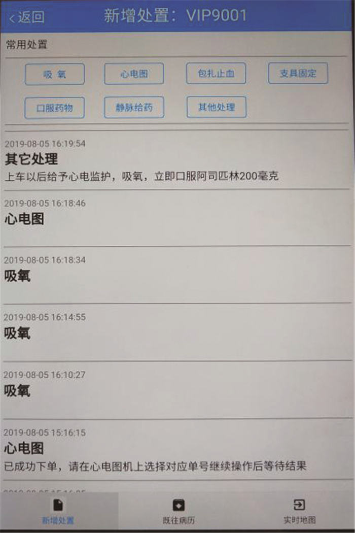 | 图 6 转运途中可随时增加患者病情记录 Fig 6 The patient's condition record can be increased at any time during the transfer |