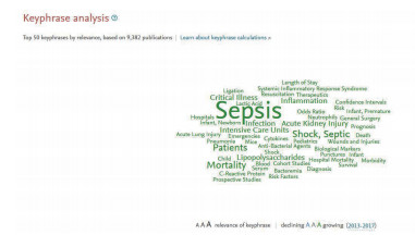 基于SciVal分析平台,选择2016-2019年全球Topics(研究主题)中包含关键词sepsis或septic shock的,筛选Topics的显著性指数(prominence percentile)大于或等于95%的研究主题,作为脓毒症研究前沿的备选集合。全球脓毒症的Topics共228个,prominence percentile为Top5%的Topics有15个,其中prominence percentile为Top1%的Topics有3个。