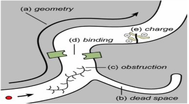 ECM主要成分包括弹性蛋白、胶原蛋白、糖胺聚糖(GAGs)、蛋白聚糖等。整体来看,神经细胞浸润在ISF中。ISF的组成则包括了蛋白多糖、透明质酸、胶原蛋白等。不同的成分具有不同的功能,例如透明质酸HA通过与细胞表面受体肌腱蛋白的相互作用促进细胞的运动和增殖,与树突生长、突触可塑性、细胞附着和迁移有关[25-26]。基质金属蛋白酶(matrix metallopeptidases,MMPs)和透明质酸还负责ECM蛋白的降解和重构[26-27]。MMPs是在神经元和小胶质细胞中合成,再分泌到ISF中。研究表明,MMPs可能与神经创伤后学习及记忆能力的损害有关[28]。ISF为神经细胞供营养,是神经细胞废物的转运及相互之间的信号传导的中介场所[29]。各种影响ISF物质转运及信号传导的因素,可能导致神经细胞受损后释放大量有害因子(如谷氨酸、促凋亡因子、促炎性因子、自由基等)的积累,从而进一步加剧了(继发)神经损伤损害(图 2)[3, 30]:(1)影响ECM的几何结构,如神经创伤后,因血脑屏障的破坏以及能量代谢的障碍导致细胞毒性水肿,细胞体的肿胀导致ISS空间受压变小,而ISS几何结构的改变阻断了ISF的引流途径[31];(2)死腔(dead-space)的出现;(3)出现堵塞;(4)结合位点的问题;(5)局部负电荷影响带电分子扩散。
