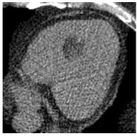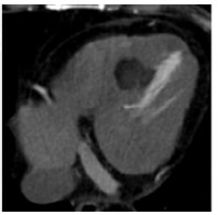 | 图 1 心脏CT图(室间隔肿瘤在T2WI像上显示为高信号) |