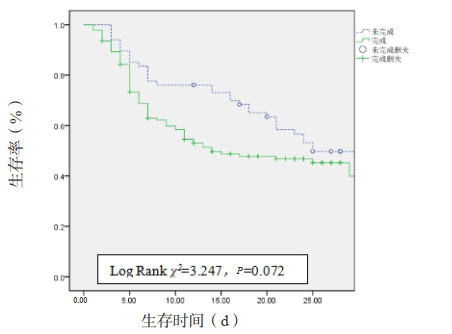 | 图 2 执行1 h Bundle患者的28 d生存曲线 Fig 2 Survival curve for patients with 1 h Bundle completion at 28 days |