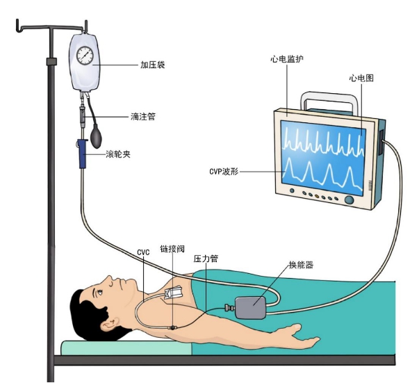 | 图 1 使用压力传感器的CVP监测 |