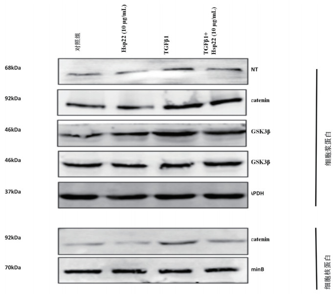 | 图 5 Hsp22对WNT/β-catenin信号通路蛋白表达的影响 Fig 5 Effect of Hsp22 on WNT/β-catenin signaling |