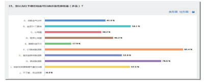 86.1%认为出血风险、82.9%认为复发风险的评估、85.8%认为需要进行肺动脉高压筛查、3.8%认为不需要、10.4%不了解;62.4%~65.9%认为是基础病(如,心脏、肝脏、肾脏功能)或并发症筛查、3.5%完全不了解;59.5%认为D-Dimer可以作为VTE复发的重要标记物、31.5%认为不可以、9.0%不了解;随访期间首选的影像检查,49.1%认为是CTPA、37.3%认为是V/Q scan、13.6%不了解。