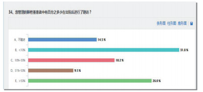 调查中97.4%医师认为急性PTE患者出院后有必要随访;最佳的随访频率界定,59%医师认为每1个月1次、2.9%~10.4%认为2~3月随访1次;能够完成随访患者的比例,26.0%医师完成半数以上的PTE患者随访、9.5%随访达到30%~50%、18.2%随访达到10%~30%、31.8%随访小于10%、14.5%不随访。