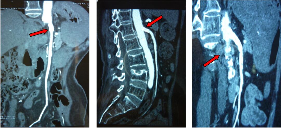 TAMI的主要危险因素是动脉粥样硬化性疾病和血脂异常[14]。由于粥样斑块与血栓的存在,肠系膜血管狭窄变形,血流量较正常人减少。进食后血液大量供应胃部参与消化过程,肠系膜血流量再次减少。此时,因动脉供血不足,组织将继发缺氧,并引起肠道平滑肌痉挛,临床上则表现为肠绞痛等餐后综合征的症状。