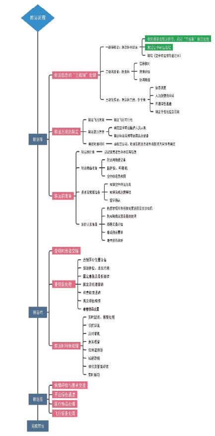 1 空中医学转运流程转运流程分转运前、转运时、转运后三个模板,转运流程框架可见图 1。